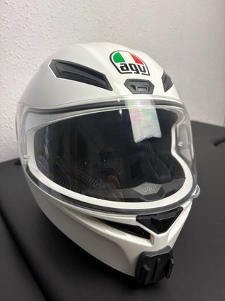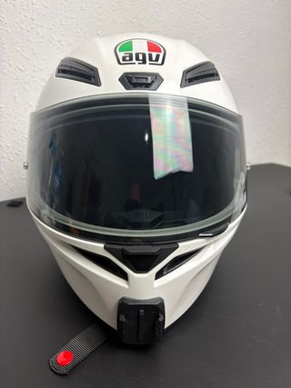 Casco integral AGV K1 S en color blanco y talla S. Diseñado para ofrecer seguridad y comodidad. - Calota exterior aerodinámica. - Visera clara con tratamiento antivaho. - Interior extraíble y lavable. este modelo no incluye pinlok de serie . tiene instalado para poner cámara de acción en el mentón valorado en 17 euros a medida . se puede quitar fácilmente .