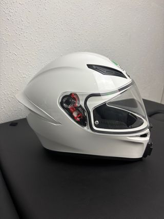 Casco integral AGV K1S en color blanco. Diseñado para ofrecer protección y comodidad. - Calota exterior aerodinámica. - Visera clara con tratamiento antivaho. - Sistema de ventilación integrado. regalo visera ahumada con pinlock y soporte ya instalado para cámara de acción .talla L . usado una vez comprado por capricho .