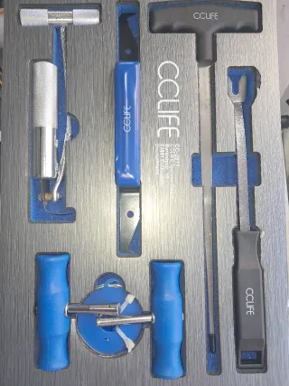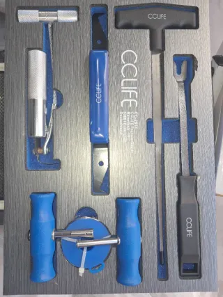 Kit de herramientas para el cambio de parabrisas de automóviles. - Incluye mango en T. - Incluye cortador. - Incluye extractor. - Incluye herramienta de sujeción -Regalo cable trenzado de dureza superior Solo usado una vez...para extracción de parabrisas (luna) de forma muy fácil