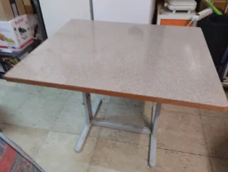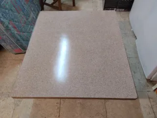 Mesa compacta y práctica, ideal para caravanas o espacios reducidos. - Tablero con acabado moteado. - Estructura metálica plegable....medidas 100 por 84. Estaba en una caravana Ace...sirve para cualquier marca si te cuadran las medidas