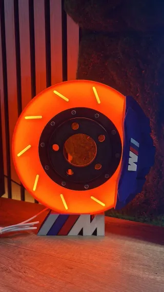 Original lámpara decorativa con diseño de freno y pinza BMW M. - Iluminación LED integrada con interruptor.