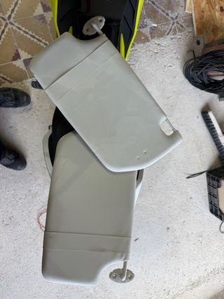 Parasoles originales para Mercedes R129. Piezas de repuesto para tu vehículo. - Color negro. - Incluye ambos parasoles. Se vende pareja parasoles con las tapitas de adorno sin los espejos perfectos para repuesto están en muy buenas condiciones sin cortes rotos o roces una Tapita está pegada , solo haría falta los espejos con sus tapas pertinentes.