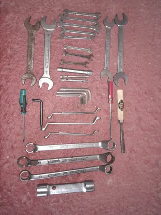 Conjunto de herramientas de mecánica, ideal para reparaciones y mantenimiento. - Incluye llaves fijas de diferentes tamaños. - Variedad de llaves de estrella y de tubo.