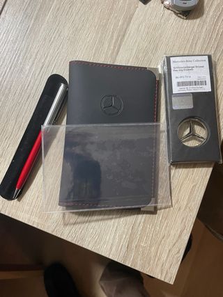 Conjunto de accesorios de Mercedes Benz. - Llavero con el logo de la estrella. - Bolígrafo y porta documentación,precio por todo,productos oficiales