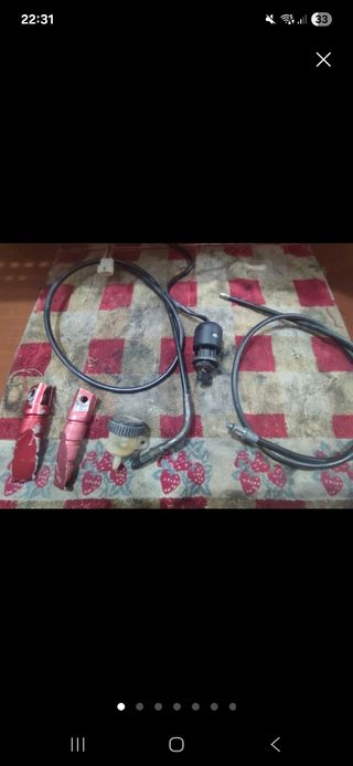 -CABLES EMBRAGUE Y ESTRIBERAS. -BASCULANTE. -TIJAS HORQUILLAS NORMALES. -SOPORTE MOTOR. -FRENO DELANTERO. -SUBCHASIS. LOS PRECIOS LOS DIGO POR PRIVADO, NO HACER CASO AL PRECIO DEL ANUNCIO.