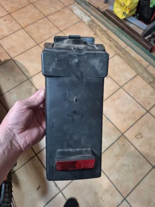 Se vende pico para moto de enduro. Pieza de plástico negro con luces. - Luz trasera roja. - Dos intermitentes naranjas. - Catadióptrico rojo inferior.