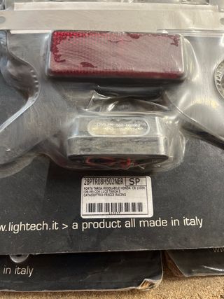 Vendo varios portamatrículas deportivos LighTech originales, marca italiana de alta calidad. ✔ Fabricados en aluminio ✔ Regulables ✔ Con luz de matrícula LED ✔ Incluyen catadióptrico ✔ Soporte para intermitentes ✔ Producto Made in Italy - Honda CB 1000R - Kawasaki ZX6R 2007 - Yamaha T-MAX - Suzuki GSXR 600/750 (08) - Yamaha R1 / R6 - Suzuki GSXR 600/750 Racing (04-06) - Honda CBR600RR ( DAL 07 ) - UNIVERSAL