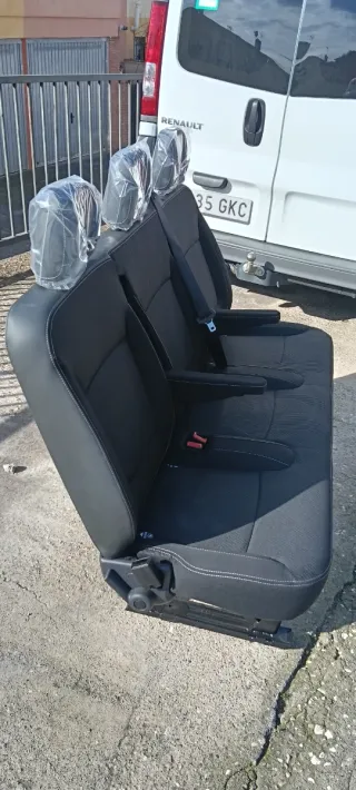 Asiento de la tercera fila para Opel Vivaro. Tapicería en dos tonos. También dispongo de cinturones de tercera fila y cinturones de segunda fila a 100 euros la unidad, asientos segunda 300 euros y tercera fila 600 euros, suelos de goma traseros para larga y corta 300 euros, anclajes para asientos traseros pack de 8 tornillos 50 euros. Depósito de gasoil con aforador 400 euros, puente trasero completo 500 euros,todo nuevo a estrenar procedente de vehículo sin kilometraje. Más información en el 637378585 - Tapicería gris y negra. - Costuras en contraste.