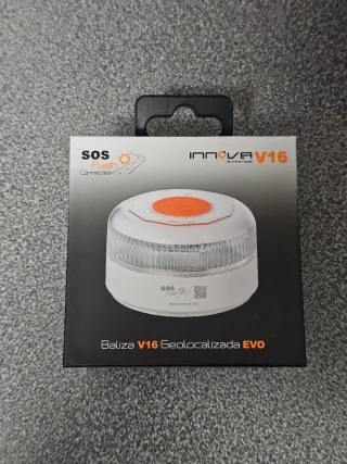 Baliza V16 sin abrir. Me la regalaron pero ya la tenía. - Homogada por la DGT - Diseño compacto y moderno. - Color blanco y naranja.
