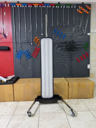 Cama de mecánico con acolchado azul y estructura metálica. -Esta sin usar - Marca Silverline. - Ruedas para facilitar el movimiento.