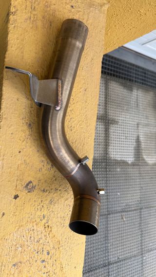 Pieza de escape para BMW GS 850. - Fabricado en acero inoxidable. - Diseño curvo para optimizar el flujo. - Incluye soporte de montaje.