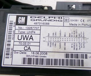 Centralita de control para Opel Astra H. - Modelo: GID DELTA. - Número de pieza: 13275077. - Fabricante: Delphi Grundig. - Fabricado en Portugal. - Fecha de fabricación: 17/09.