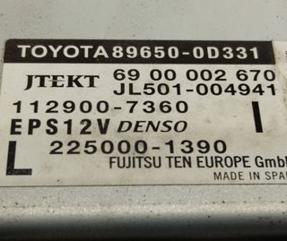 Centralita de dirección TOYOTA YARIS Año 2011 1.5 HYBRID (NHP130 ). Observaciones Denso. Referencia 896500D331. Código interno 5056979.