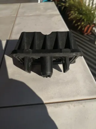 Soporte de plástico negro. Para los bajos del coche, apoyo del gato. - Diseño robusto con detalles. - Forma cuadrada con base ancha.