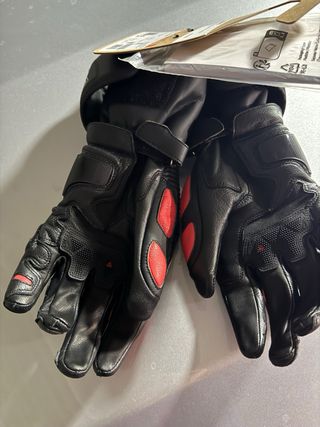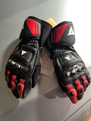 Guantes de moto de la marca Dainese Druid 4 en color negro y rojo. Nuevos a estrebar talla M 8.5 - Diseño deportivo. - Protecciones en nudillos y dedos. - Cierre ajustable en muñeca. - Detalles en fibra de carbono.