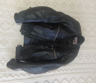 Chaqueta de cuero auténtico para moto, talla L. Diseño moderno y funcional. Con protecciones incluida espalda. Refuerzos de kevlar - Cuero real de alta calidad. - Talla L. - Kevlar
