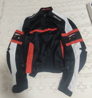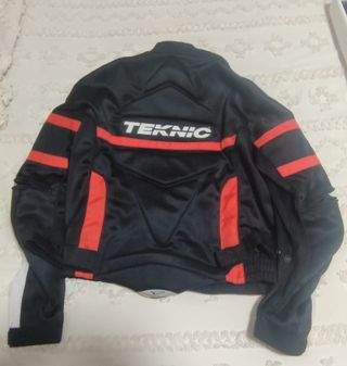 Chaqueta de moto de verano con protecciones incluidas. Ideal para circular en climas cálidos. Talla L - Chaqueta negra con detalles en rojo. - Incluye protecciones en codos, hombros y espalda.
