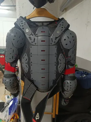 Protección integral para enduro o motocross de la marca Acerbis koerta 2.0 talla L/XL, diseñada para ofrecer seguridad en la práctica deportiva. - Color gris y negro con detalles en rojo. - Cierre frontal con cremallera. - Paneles protectores en torso y brazos. - Tirantes ajustables.