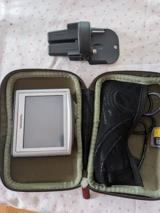 Navegador GPS TomTom en su funda protectora. - Pantalla a color. - Incluye soporte para coche. - Funda de transporte con compartimento de malla.