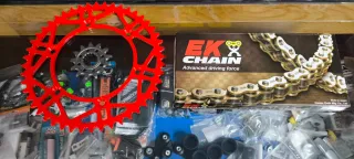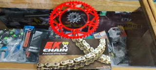 Recambios Alan vende kit de transmisión para gas gas enduro. Cadena super reforzada de retenes EK Racing, corona acero color rojo o negro y piñón de acero. Nuevo a estrenar. Precio 99€. Se hacen envíos. Tel. 679704038. Venta de todo tipo de recambios de moto