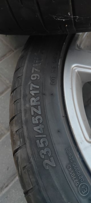 Conjunto de 5 llantas Audi a4 S-Line de 17 pulgadas. 4 llantas en muy buen estado y una decente. Las gomas están muy nuevas como se puede apreciar de abril de 2024, tendrán apenas 4000km No sé envia y no sé negocian. Válidas para grupo vag, Audi, Seat, golf etc