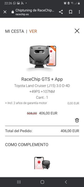se vende centralita race chip la más alta gama con la aplicación esta centralita es la que da más cv y más par de la marca con 7 mapas Nueva vale unos 500e la pongo en 290 e se a montado menos de 1 año se nota que baja el consumo se nota más potencia a 2000 rpm la cambio por montar adonis el precio es depende cuanto valga nueva según el precio de nueva se podrá ajustar para modelo de toyota land cruiser 150 el 3.0 del año 2009 o 2010 todos los qie tengan 173cv para el 120 de 173cv creo qie le vale pero no estoy seguro