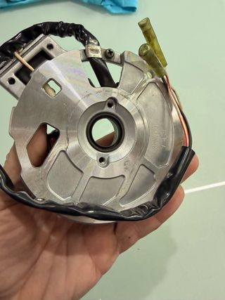 Rotor MVT para motor Minarelli horizontal. Incluye todos los componentes visibles en las imágenes. - Rotor MVT. - Bobina. - Plato. - Soporte. ROTOR MVT DIGITAL VARIABLE CON LUCES MINARELLI HORIZONTAL (A PARTIR DE 2003) Rotor MVT digital variable con luces Minarelli Horizontal (a partir de 2003)\nRotores gama PREMIUM, con la principal característica de que dispone de salida de electricidad, gracias a esto podremos alimentar una bomba de agua o un pequeño marcado