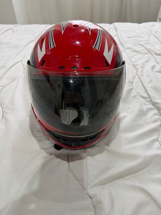 Casco de moto con diseño llamativo en rojo, negro y detalles plateados. Incluye pantalla transparente. - Diseño deportivo. - Visera abatible.