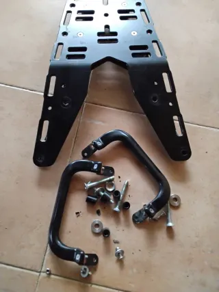 Es de doble capa para que sea resistente. Viene con los tornillos. Regalo las asas que vienen muy bien para mover o levantar la moto. Lo tenia montado en una ktm del 2019. Se le puede atornillar la base del baul portabultos.