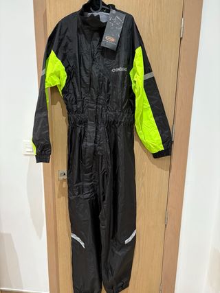 Mono de agua para motorista de la marca HELD, completamente nuevo. - Color negro con detalles en amarillo flúor. - Cremallera frontal. - Cintura elástica. - Puños y tobillos ajustables. - Bandas reflectantes.