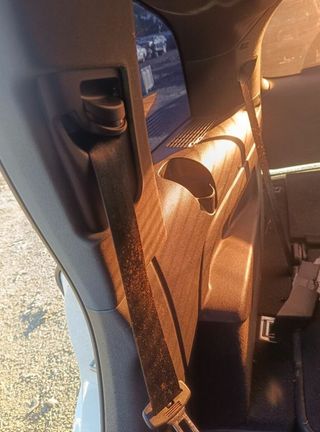 Cinturon de seguridad de tres puntos para la tercera fila de una Volkswagen T4. Lado izquierdo (conductor)Los cinturones presentan un buen estado general, aunque muestran señales normales de uso. También va con el embellecedor incluido