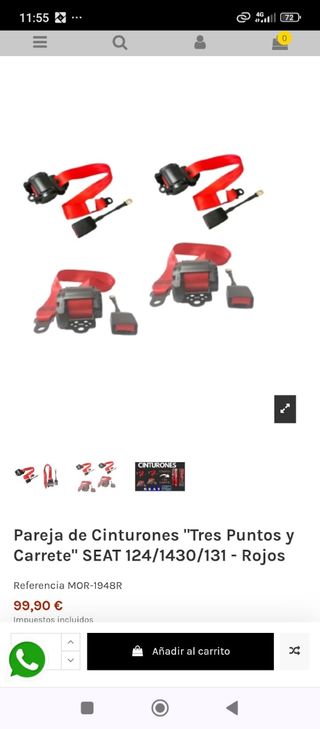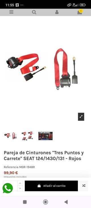Cinturones de seguridad de tres puntos de anclaje con homologacion. Precio de la pareja 90€, varios colores disponibles: negro y rojo y se podrían conseguir en azul naranja gris y marrón. Posibilidad de cinturones traseros de dos o tres puntos de fijación sin carrete para facilitar su instalación Seat 124 1430 124 sport 850 127 600 131 1600 1800 2000 FU FL Renault R4 R5 R6 R8 R11 R12