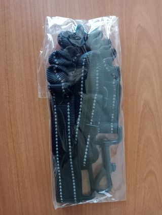 Se sujeta al las dos varias del cabecero tiene también la correa de enganche con mosqueton y enganche al cinturón de seguridad
