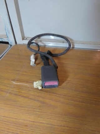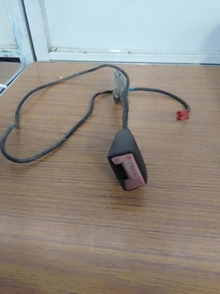 Hebilla de cinturón de seguridad con conector eléctrico. Pieza de recambio para vehículos. - Hebilla de plástico negro. - Cable con conector. - Diseño curvo en el soporte.