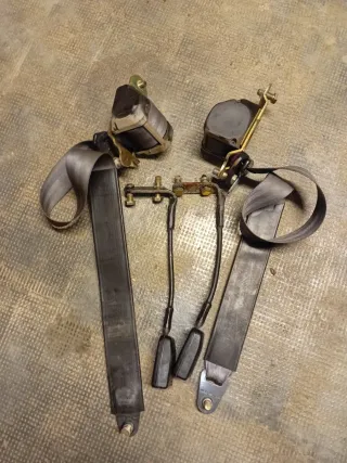 Cinturones de seguridad delanteros para Nissan Patrol K260. Se venden los dos cinturones. - Color gris. - Mecanismo de enrollado. - Con todos sus tornillos.
