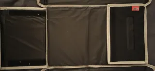 Organizador de coche Ultimate Speed, ideal para mantener el orden en tu vehículo. Se adapta a la mayoría de las cajas de pañuelos. - Compartimentos interiores divisibles con velcro. - Fácil de fijar al cinturón de seguridad central. - Plegable para ahorrar espacio.