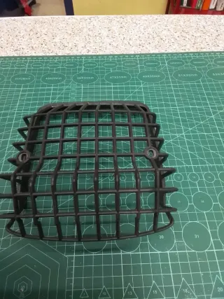 Rejilla protectora para el faro de una Vespa. - Fabricada en plástico negro. - Diseño de rejilla a cuadros.