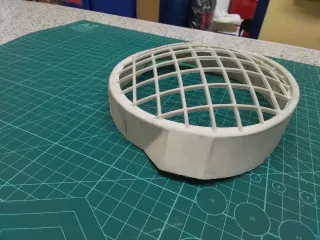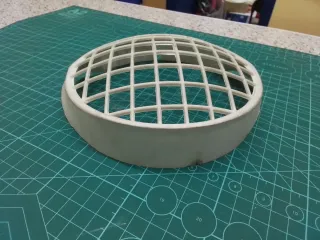 Rejilla protectora para el faro de una Vespa. Amarillento debido a almacenaje - Diseño de rejilla. - Material blanco.