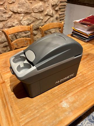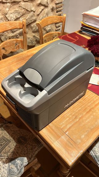 Nevera portátil Dometic TB08, ideal para mantener tus bebidas y alimentos frescos. - Diseño compacto y moderno. - Compartimento superior con portavasos. Descripción fabricante: La nevera Dometic TB 08 es una nevera portátil termoeléctrica para su uso en vehículos gracias a su conexión de mechero de 12V. Ideal para viajes, para furgonetas camper, autocaravanas, etc. Enfría y calienta. Toma de mechero. 8 litros de capacidad. Apenas utilizada. Como nueva.