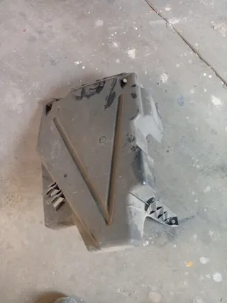 Protector para la bomba de gasolina de un Mercedes-Benz SLK. - Pieza de plástico negro. - Diseño con refuerzos y orificios de montaje.original Anclajes y estado muy bueno