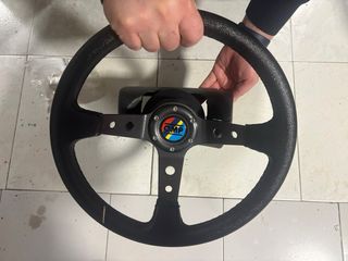 Volante OMP desplazado con piña para Citroen Saxo, regalo el plástico original recortado para esa piña (ver todas las fotos)