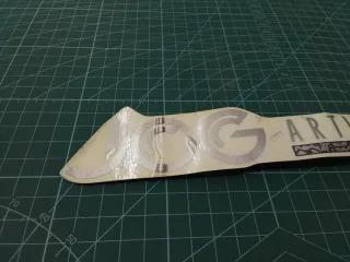 Adhesivo original para JOG 1990. Tiene tiempo almacenado - Diseño ARTISTIC SPEC. - Acabado plateado y detalles en amarillo.