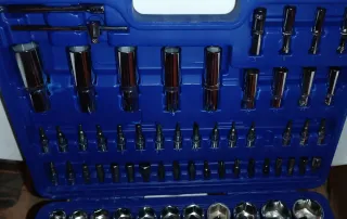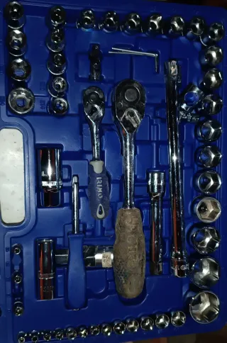 Maletín de herramientas con un juego completo de piezas. - Maletín de plástico resistente de color azul. - Incluye carraca y diversas puntas y vasos.
