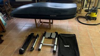 Cofre portaequipajes Thule de gran capacidad, modelo XXL. Mas escalera Barra techo I iman escalera - Color negro. - Dimensiones: 230x90 cm.