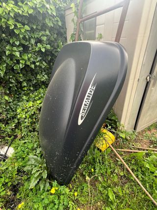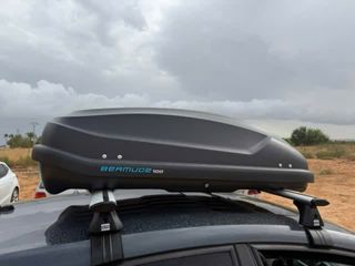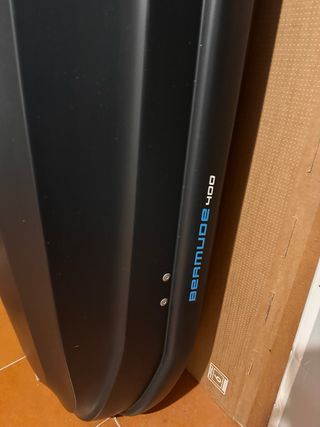 Cofre de techo Bernude 100, ideal para transportar equipaje adicional. - Diseño aerodinámico. - Color negro mate. - Mecanismo de cierre seguro. - Medidas: 142 x 82 x 42 cm. - Capacidad 304 litros. Precio negociable. Entrega en mano en Barcelona.