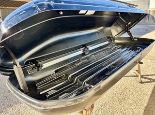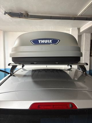 Se vende cofre de techo y barras de la marca Thule. - Cofre de techo negro. - Barras de techo. Precio nuevo 910 euros.