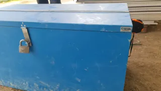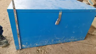 Cofre de chapa de color azul, ideal para guardar herramientas. - Cierre con candado. - Construcción robusta. Medidas 50cm de alto x 50cm de ancho y 1m de largo.