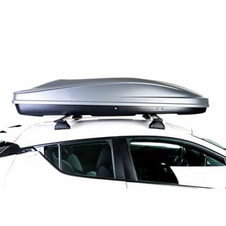 Cofre y baca portaequipajes de color plateado para el techo del coche. El cofre dispone de doble cierre: delantero y lateral (con llave). Volumen para 420lt y peso máximo de 50kg. Medidas en cm: 145x94x40 Peso: 14kg