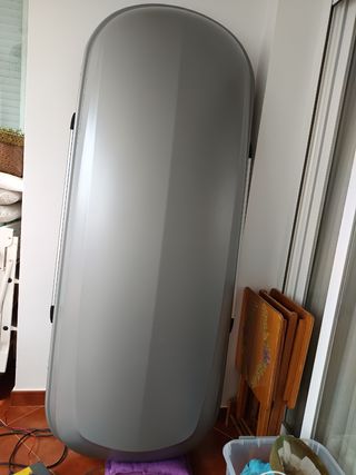 WhatsApp información y reservas: 618 039 039 Apertura lateral por el lado derecho, cerradura, cintas de sujeción internas y enganches rápidos para montaje sin herramienta (Te lo monto sin compromiso) Deja sitio para portabicicletas Posiblidad de incluir barras para railing alto y bajo, pregunta modelos y precio. Volumen 330 L. Carga máxima 75 kg. Peso 12,5 kg. Dimensiones: 149x74x42cm Fin de semana (V-L) 15€ Una semana 30€ Una quincena 45€ Un mes completo 60€ Otros días, consultar. Se firma contrato con depósito de fianza de 100€ (que se devolverá a la entrega del cofre). Thule Evospace Ecospace arcón baúl baca portaequipa