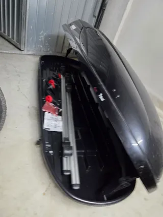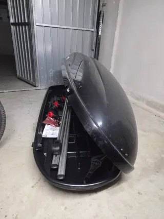 Es de muy buena marca, costo 350€ PRECIO NEGOCIABLE!! Cofre de techo para transportar equipaje en el coche. Es de color negro y tiene una forma aerodinámica. - Material resistente. - Diseño amplio para mayor capacidad.